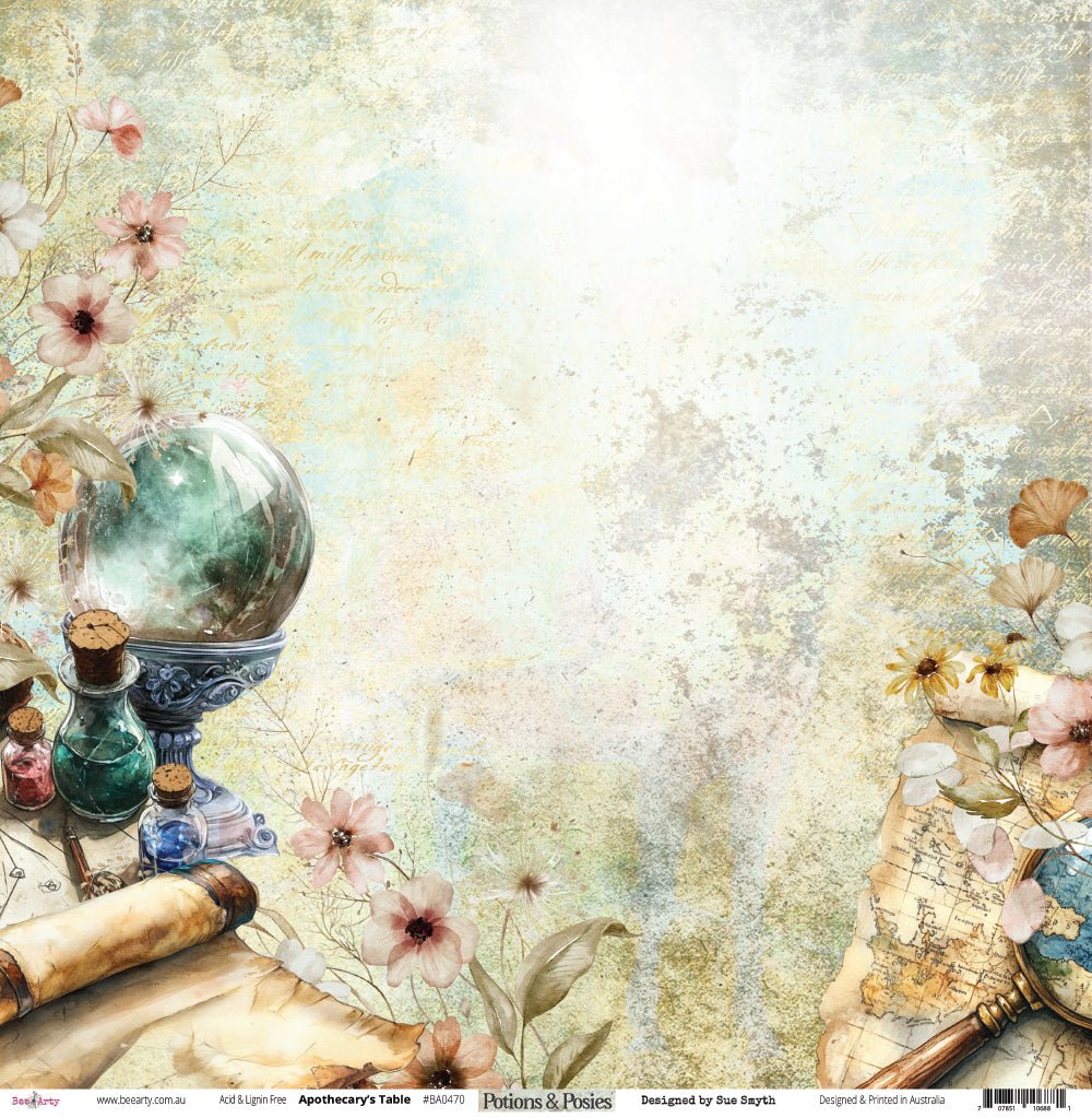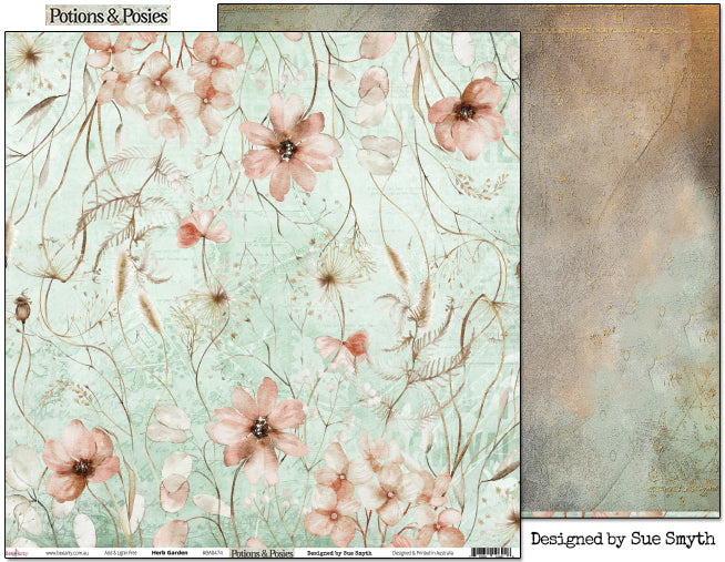 A beautiful collection of 12" x 12" scrapbooking paper exclusively designed by Sue Smyth as part of the Potions & Posies range.