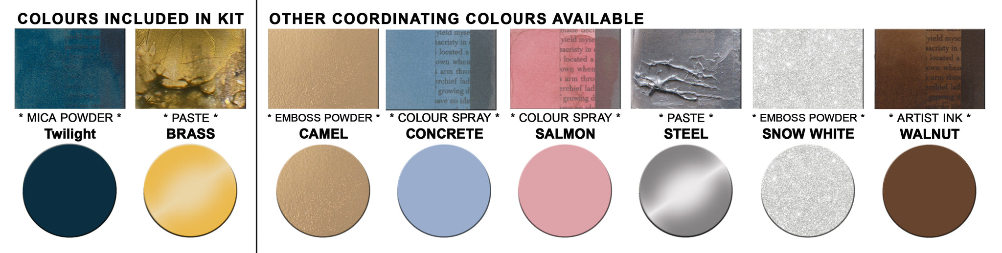 Use the colour chart (pictured) to make sure you have the Colour Blast mixed media products that complement this collection.