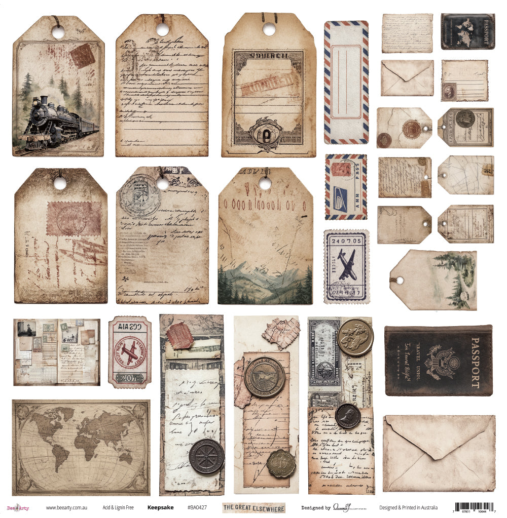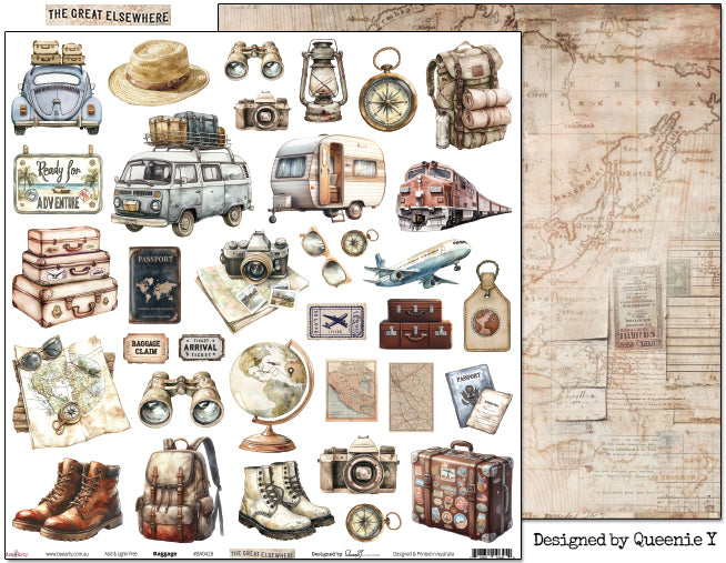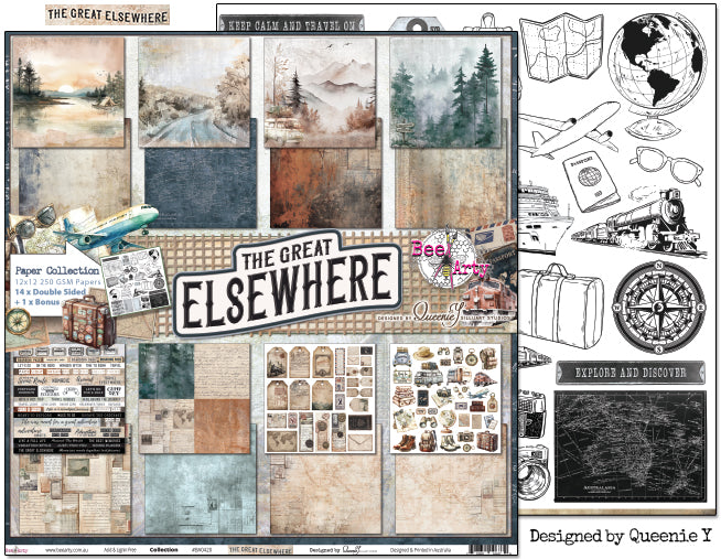 A wanderlust-filled collection of 12" x 12" scrapbooking paper exclusively designed by Queenie Y as part of the The Great Elsewhere range.