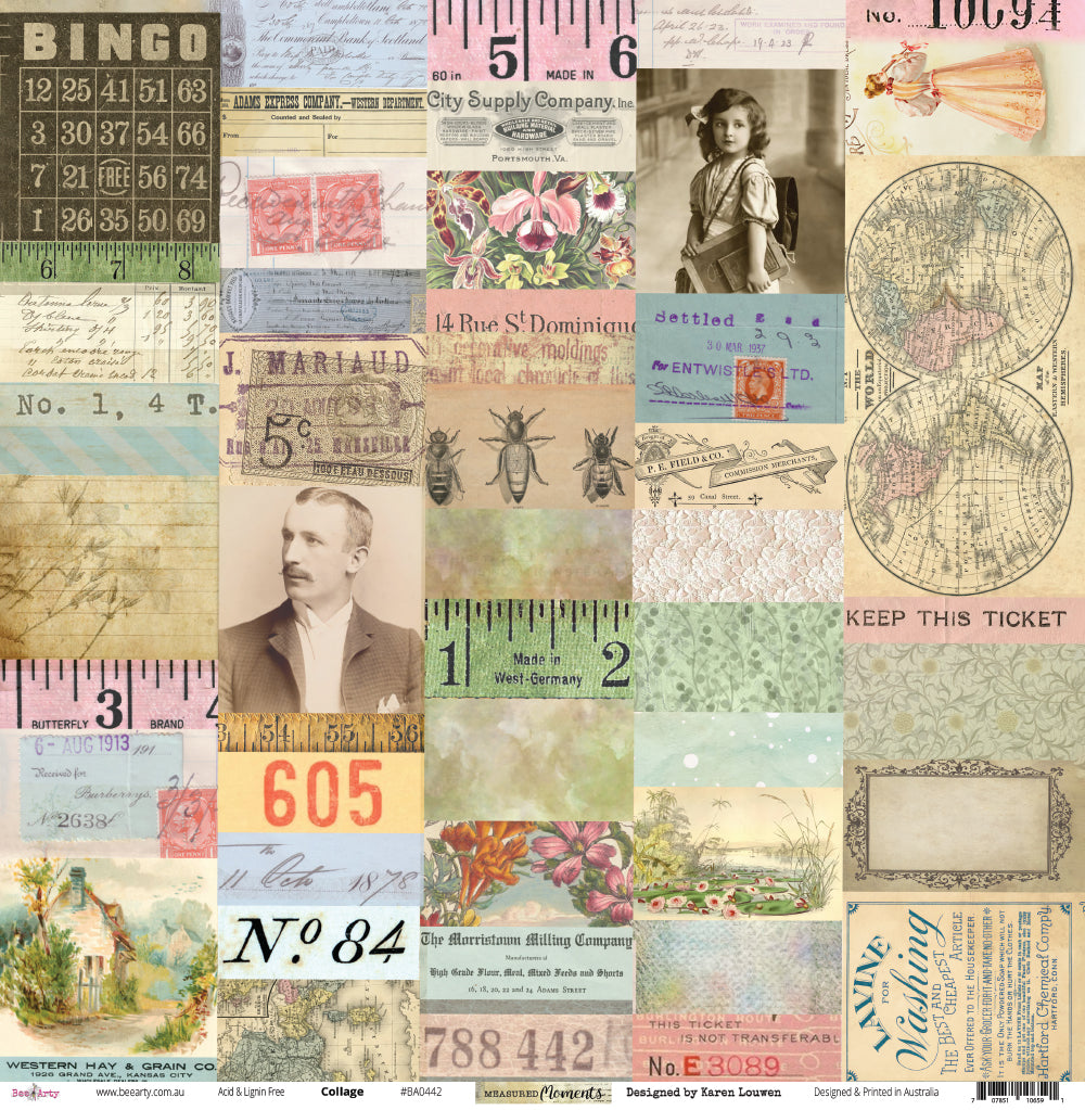 Double sided 12" x 12" scrapbooking paper exclusively designed by Karen Louwen as part of the Measured Moments range.