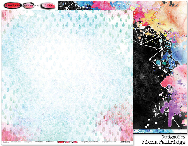 Double sided 12" x 12" scrapbooking paper exclusively designed by Fiona Paltridge as part of the Fearless, Brave & Free range.